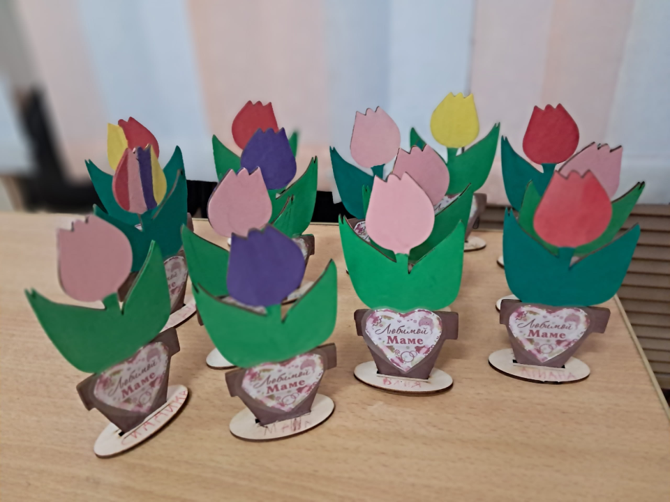Тюльпаны — нежный подарок для мам и бабушек на 8 Марта, символизирующий весну, любовь и уважение. Для создания подарка понадобилась заготовка тюльпана из дерева, гуашь.