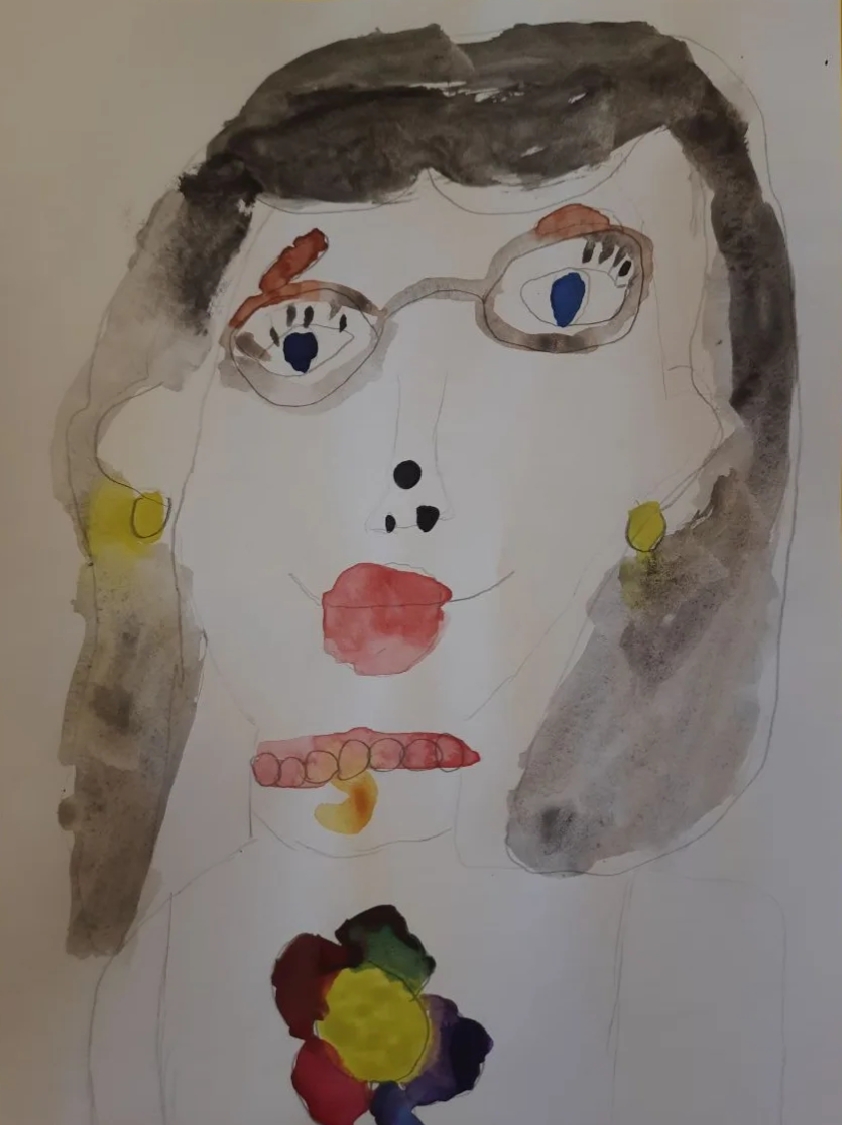 6 лет, благодаря разноцветной гуаши, обычный черно-белый набросок простым карандашом превратился в нежный и живой образ самого родного человека.