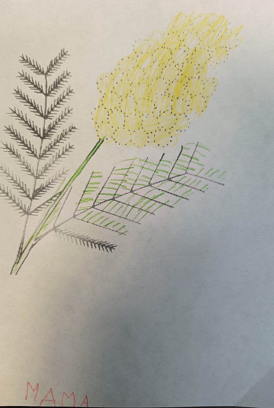 Работа выполнена ребенком с ОВЗ. В работе использовали цветные карандаши.