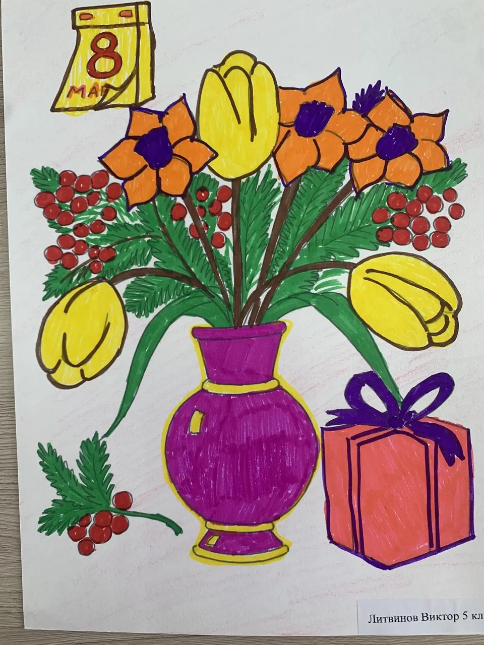 Рисунок выполнен цветными фломастерами