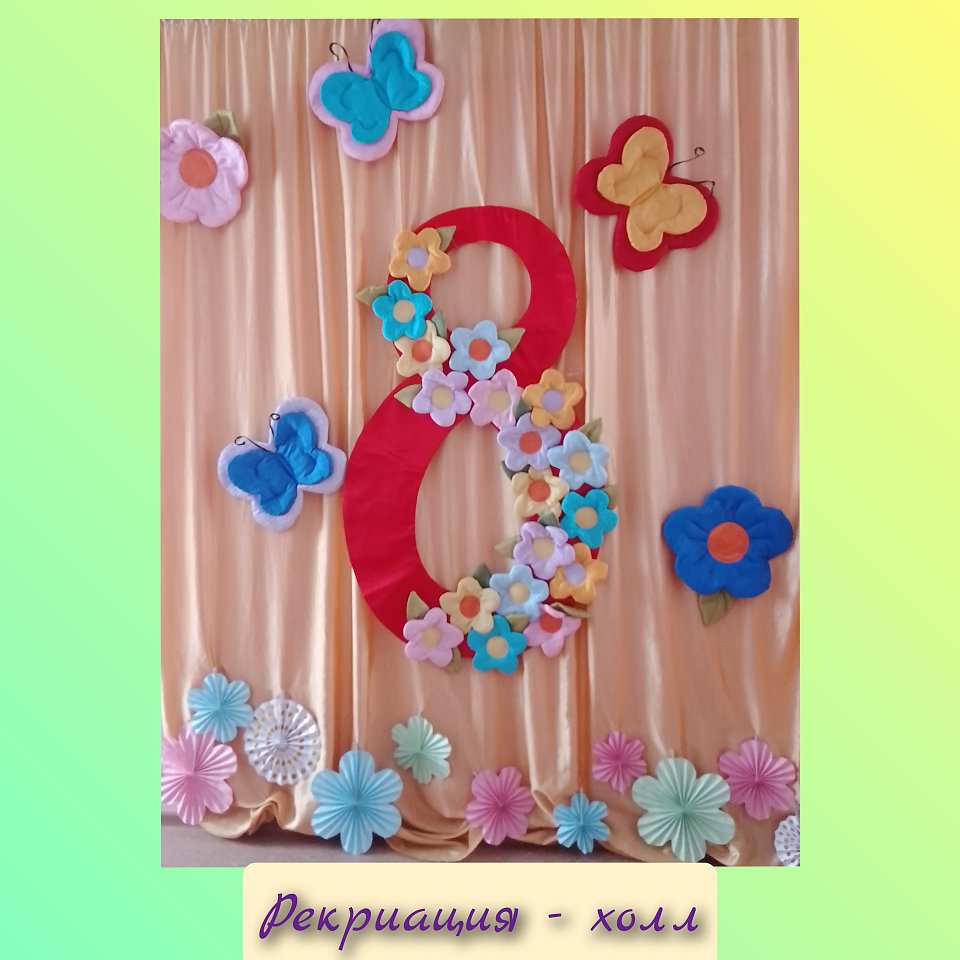 Украшение музыкального зала и рекриации - фойе к международному женскому дню.