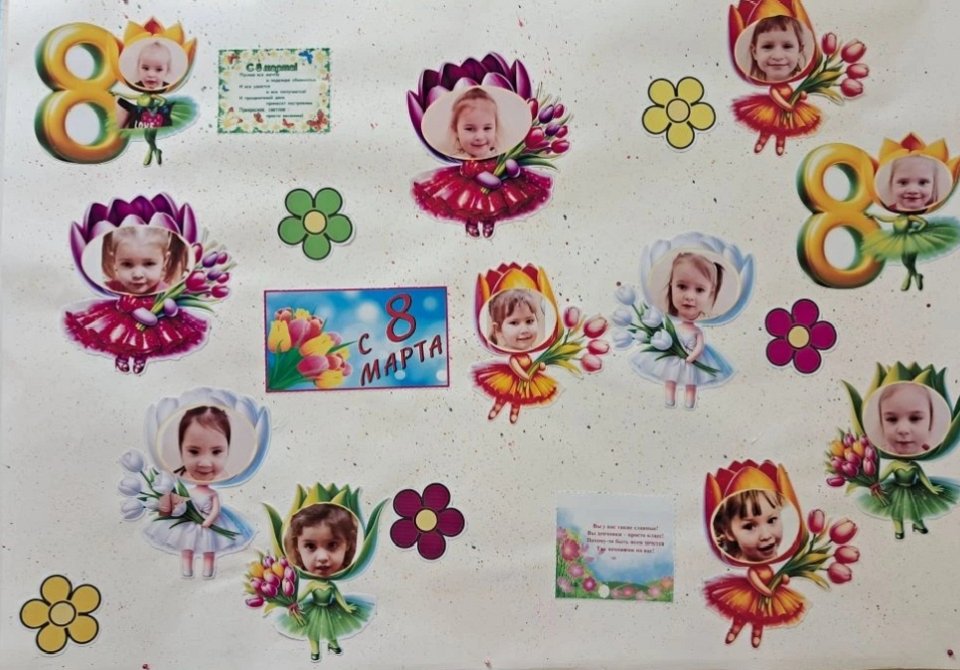 Яркая, индивидуальная и очень трогательная стенгазета, где каждый ребёнок представлен в образе цветка. Работа выполнена коллективно, с соблюдением всех этапов: от замысла до декорирования, и передаёт любовь и благодарность мамам.