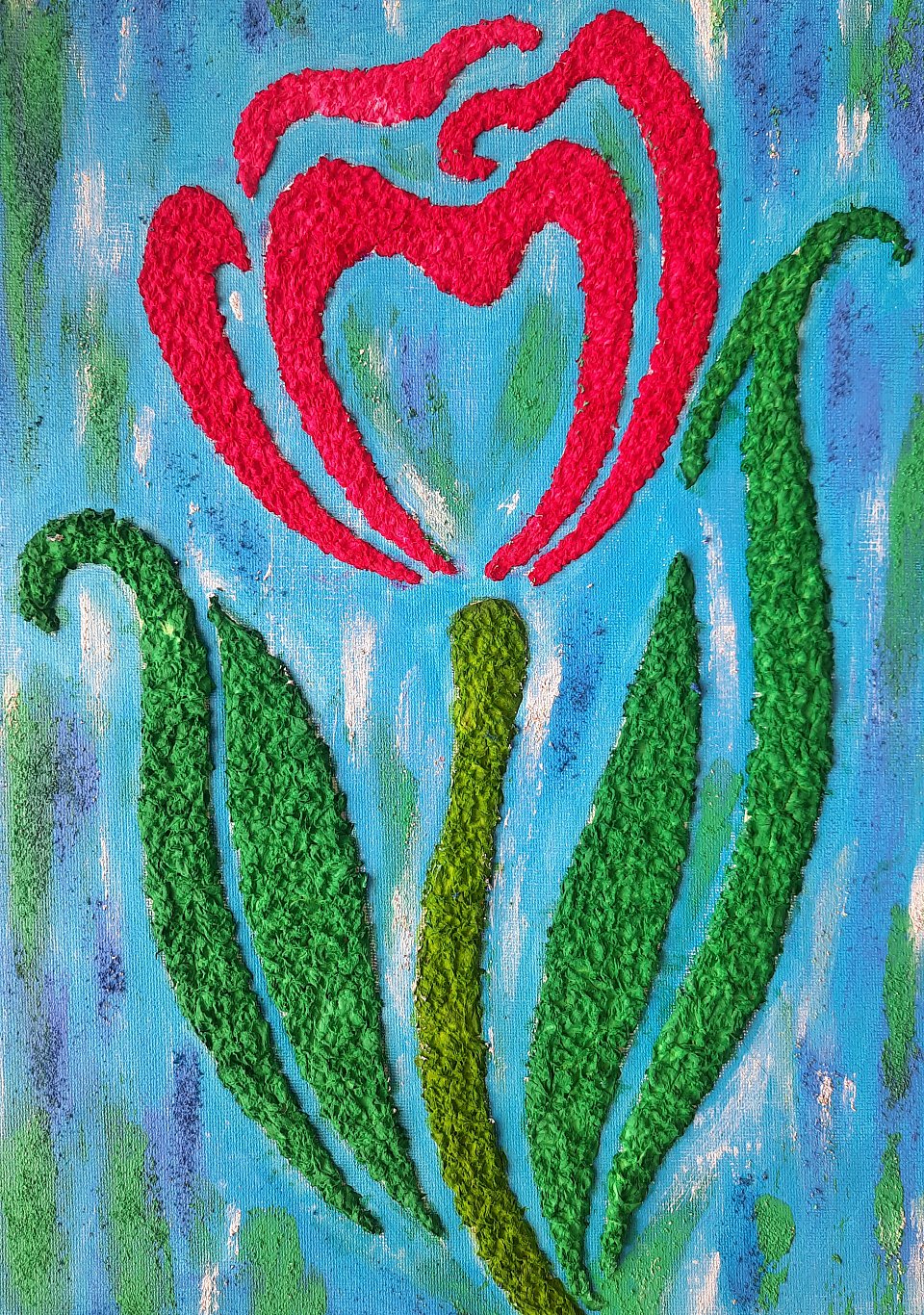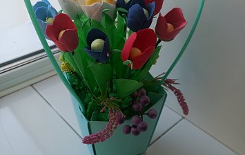 Работа выполнена из салфеток, клея и красок.