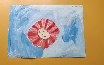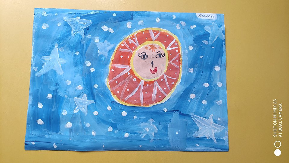 Возраст участника 6 лет. Техника исполнения: рисование. Материал: белая бумага, краски гуашь, тонкая кисточка, вода, стаканчик, салфетка.