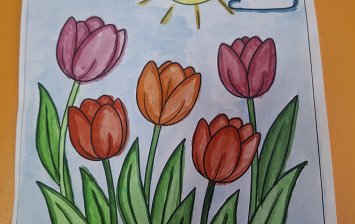 Возраст участника - 3 года . Работа выполнена при поддержке взрослого. Техника исполнения - рисование акварелью и наклеивание элементов цветной фольги.