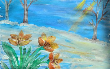 Гуашь, кисть, клеевая кисть, губка
