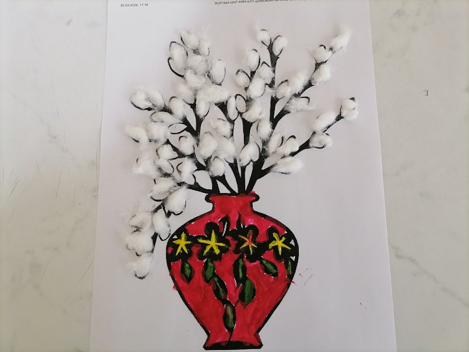 6 лет, рисование с элементами аппликации, вата , краски