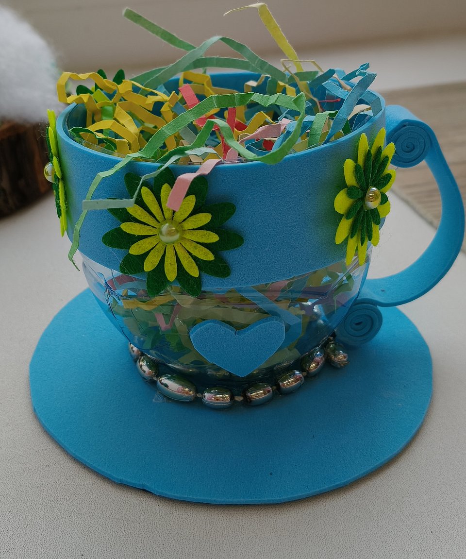 Возраст 11 лет, Техника исполнения: поделка из фоамирана и пластиковой бутылки. Материалы: пластиковая бутылка, фоамиран, диск, клей, украшения.