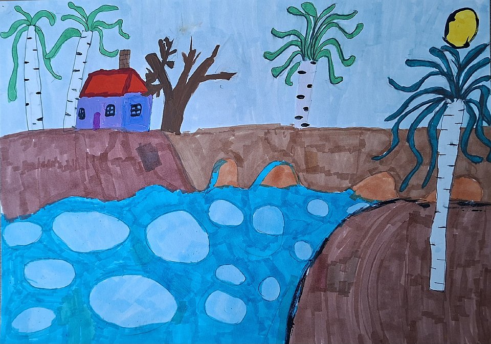 9 лет, цветные маркеры и гуашь