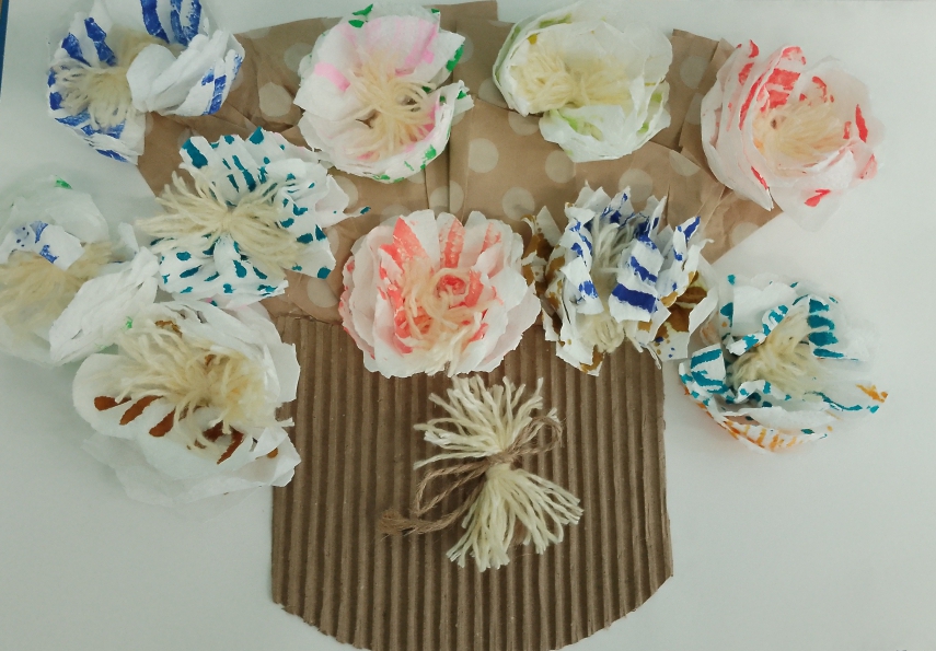 аппликация из салфеток, крафт бумаги, гофрированной бумаги, оберточной бумаги.