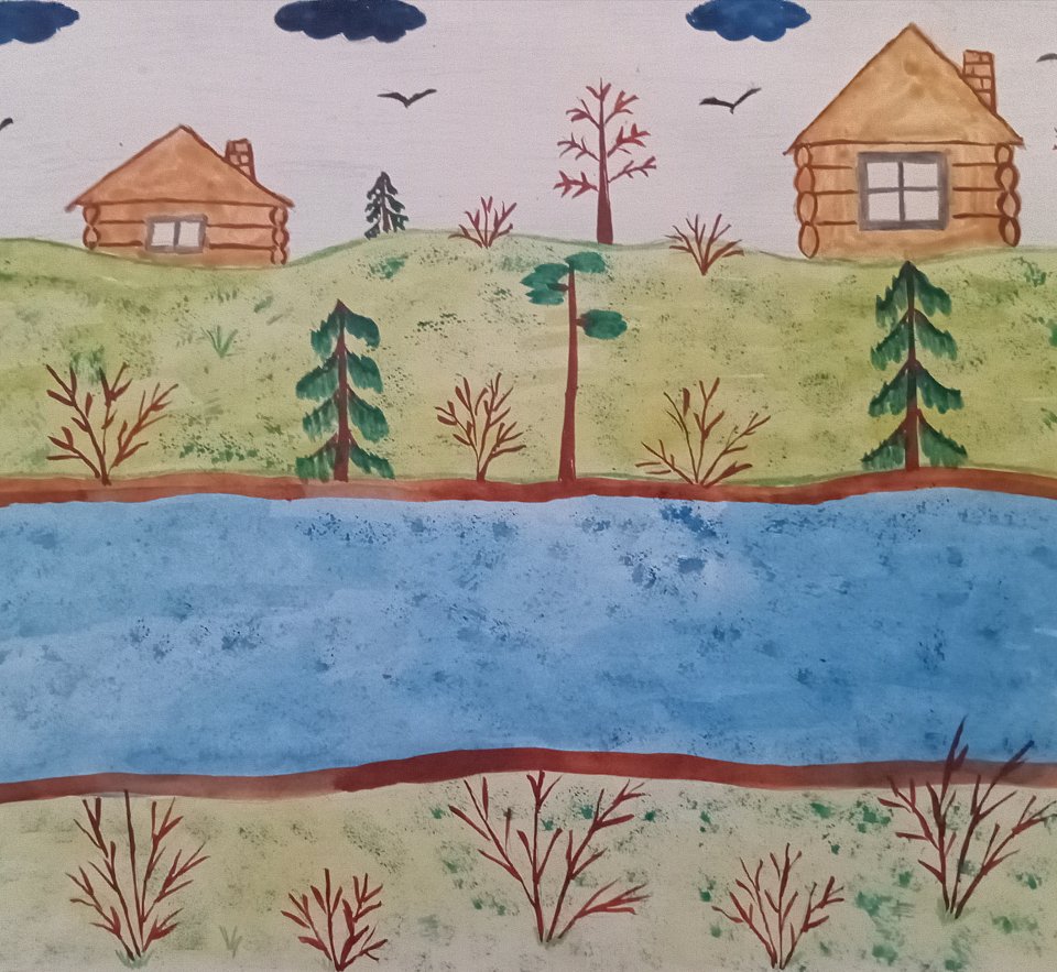 Весна в посёлке, работа выполнена красками.