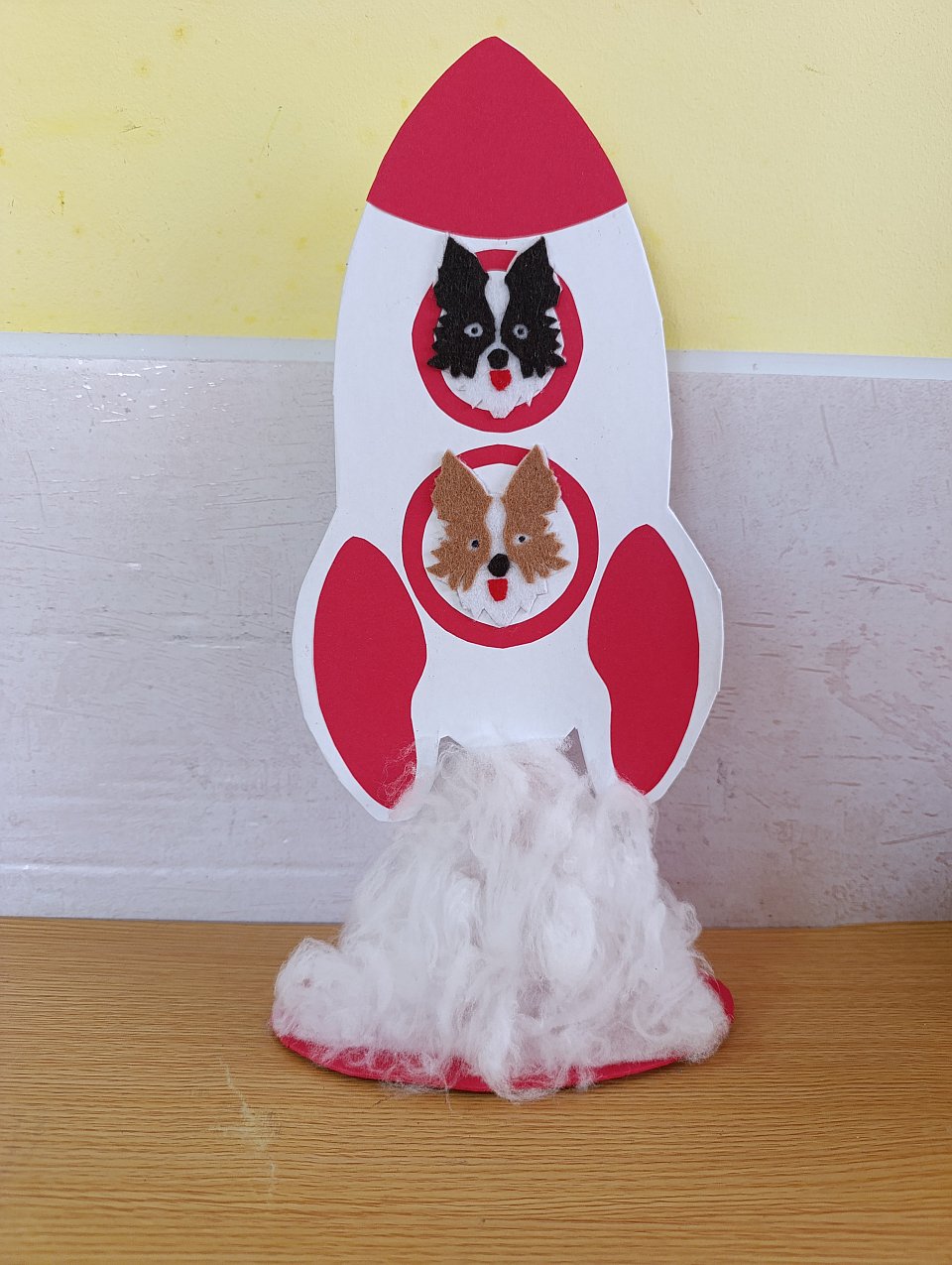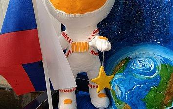 6 лет.Поделка с применением аппликации. Цветная бумага, картон, клей, синтепух.