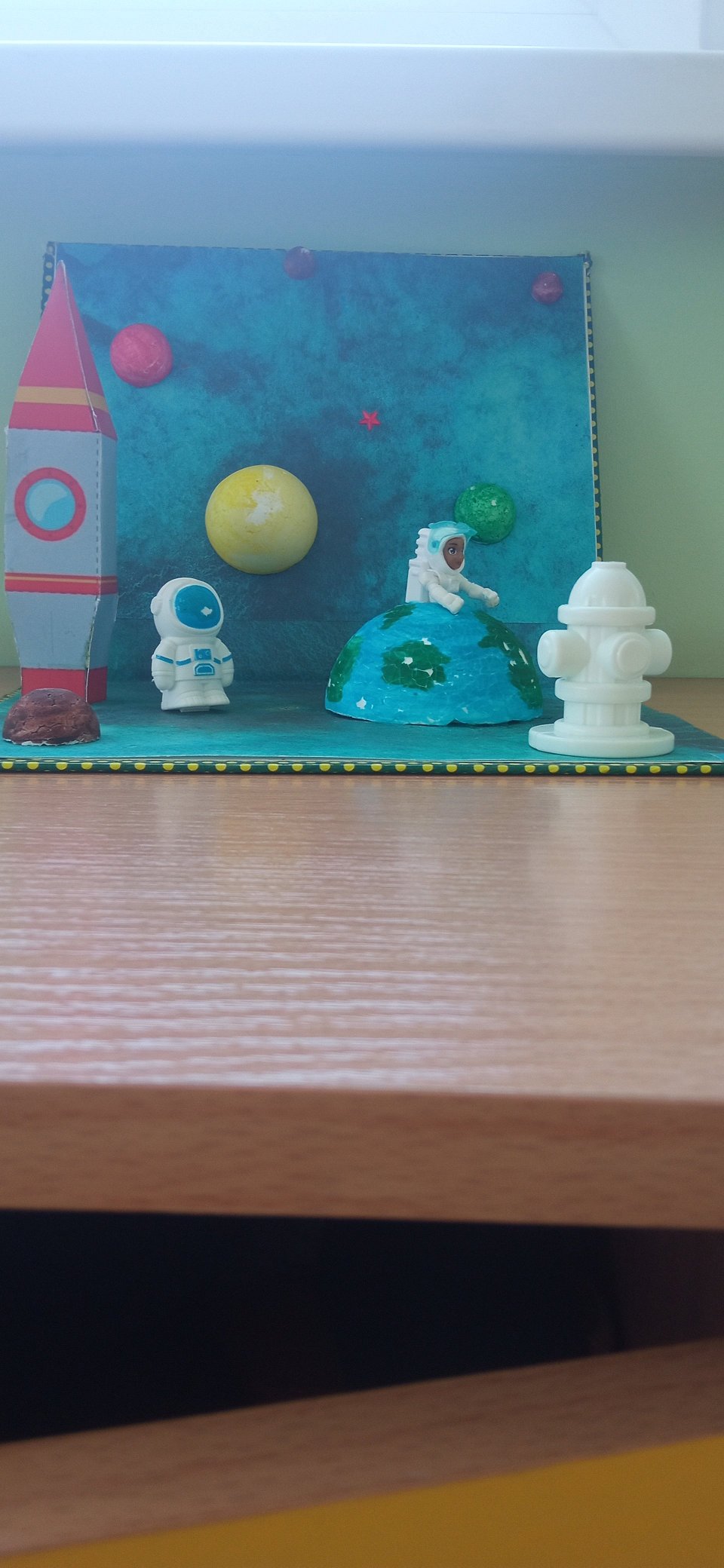 4 года, поделка, использовались:картон, пенопласт, пластмассовые фигурки космонавтов