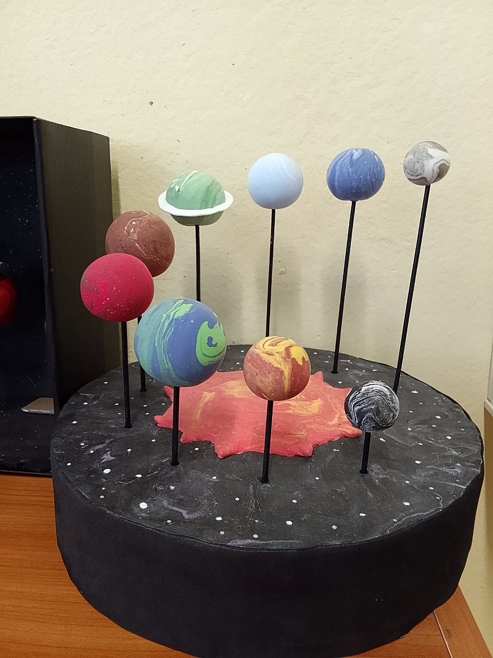6 лет, для поделки использовался воздушный пластилин, пенопласт, краска гуашь.