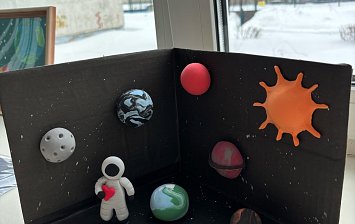 Работа выполнена из пенопластового материала, раскрашено акриловыми красками.