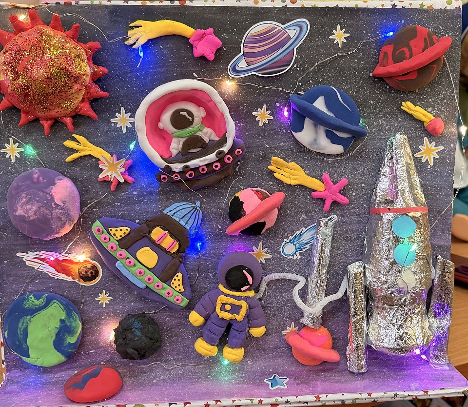 Загляни в "Пластилиновую галактику" — здесь сияет блестящее солнце, летают радужные кометы, а маленький астронавт готов покорять новые миры. Сделано с любовью и фантазией - каждый шарик пластилина хранит свою космическую историю.