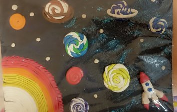 Работа выполнена из картона (картонная коробка)