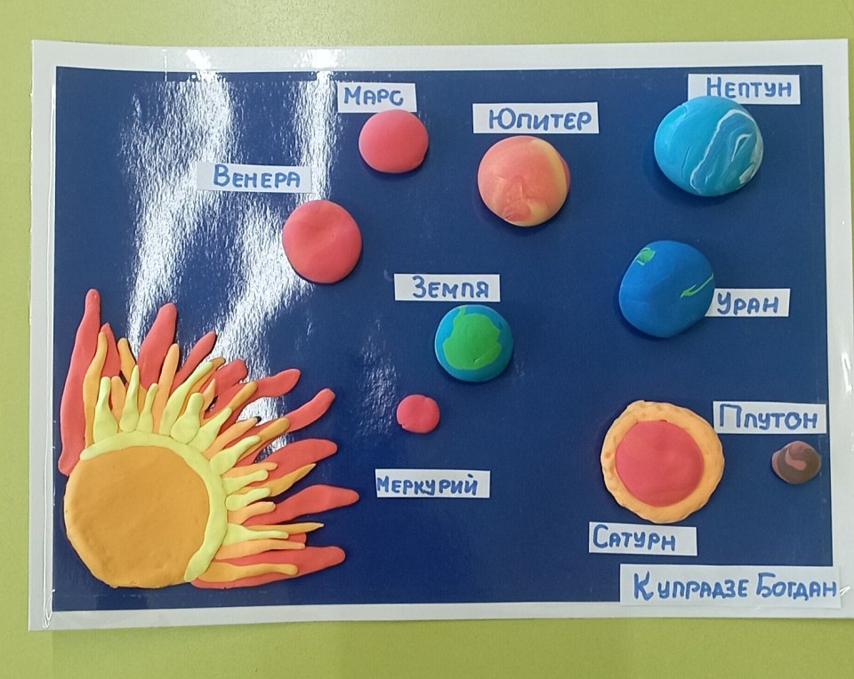Ребёноку 5 лет. Материалы: воздушный пластилин, цветной картон.