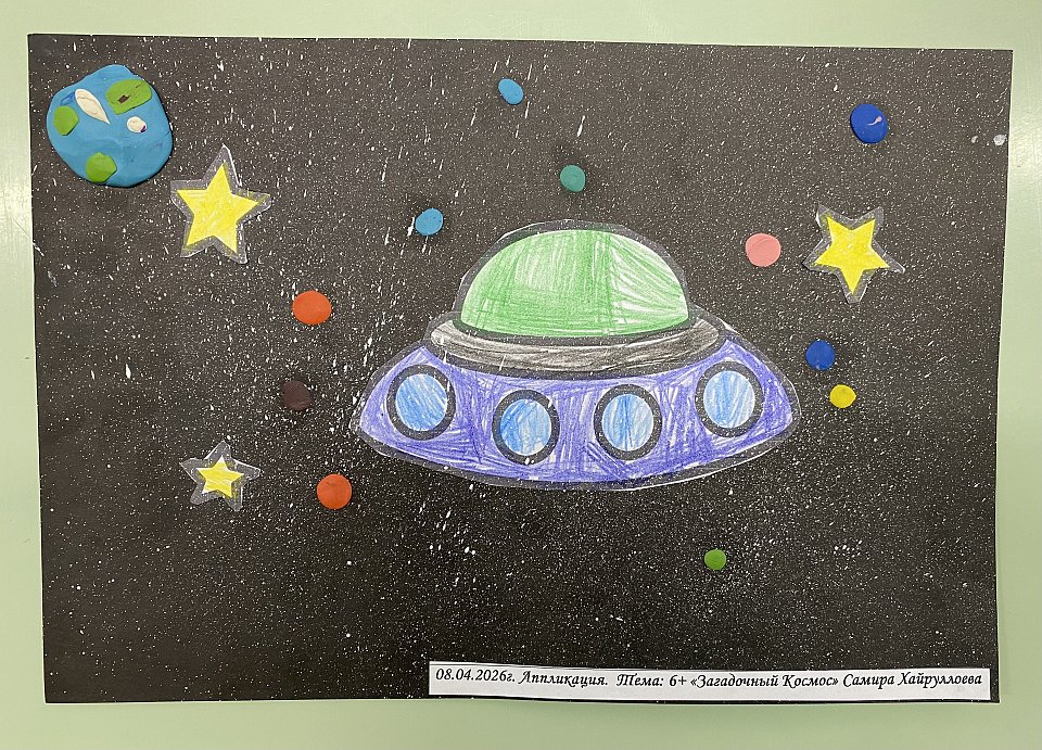 6 лет. Аппликация-коллаж, цветной картон и пластилин, клей, белая гуашь ("Набрызги" - нетрадиционные техники рисования).
