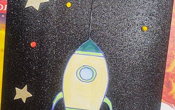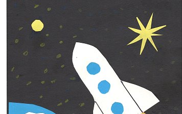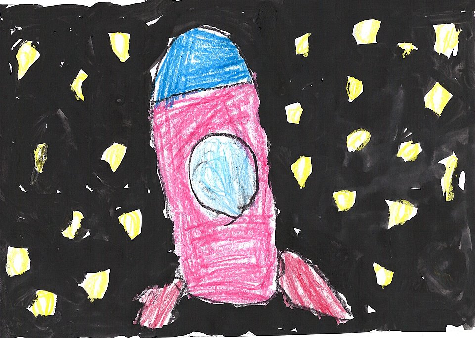 Работа выполнена с помощью красок, кистей, восковых мелков.