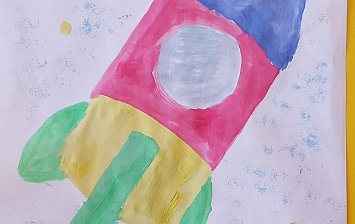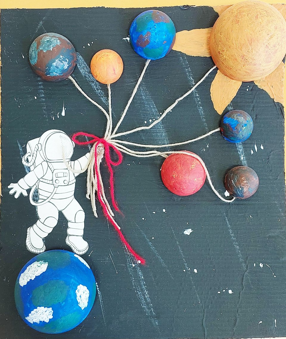 Работа выполнена на картоне,использовали шарики пенопласта,гуашь.