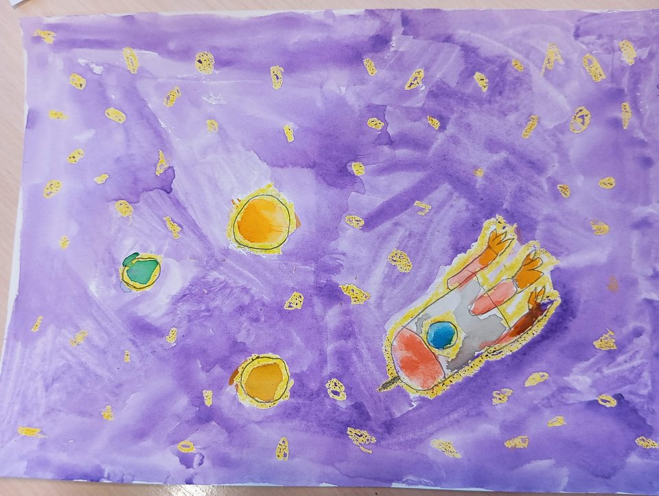 Смешанная техника: восковые мелки + акварель