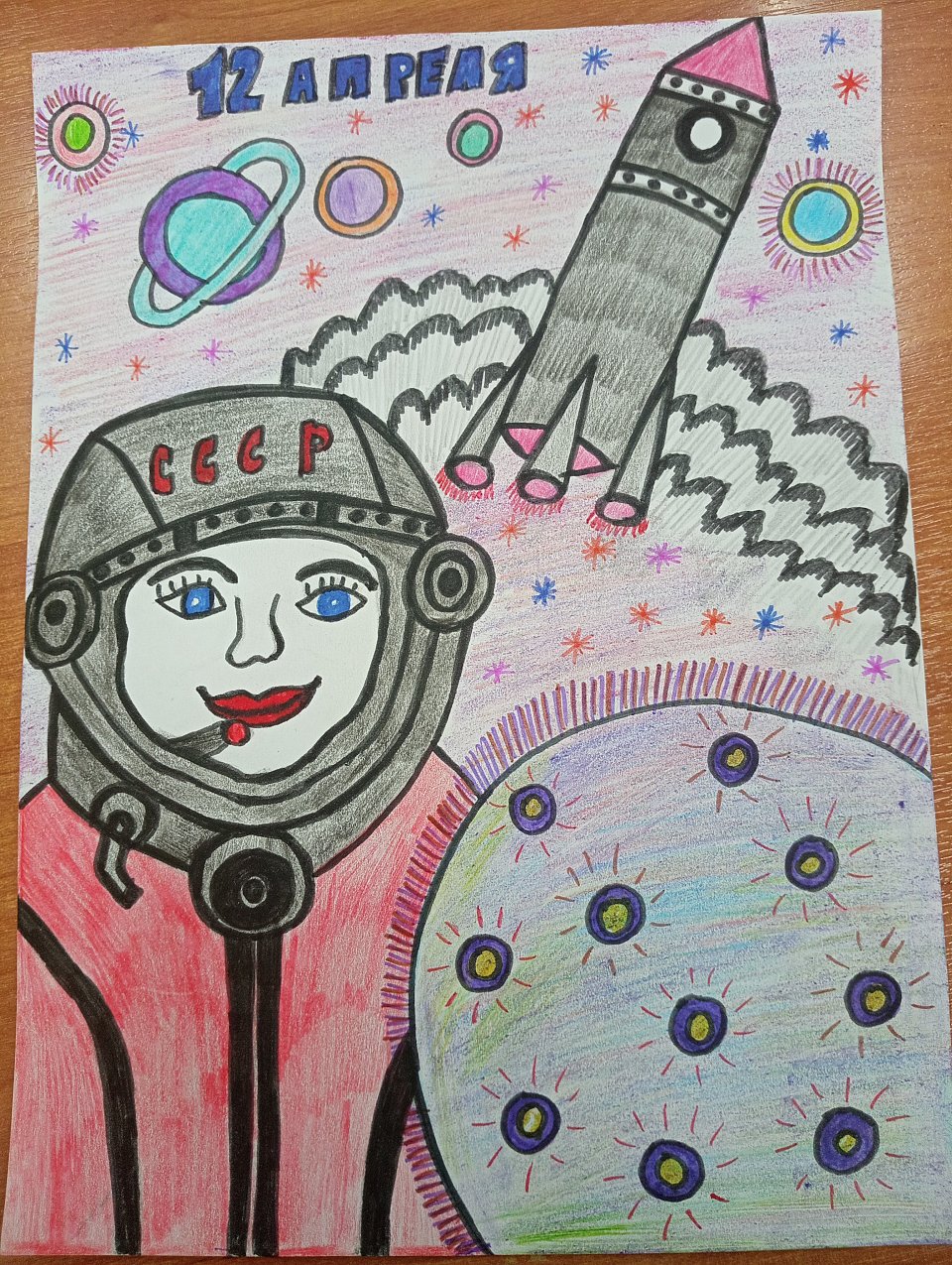 Работа выполнена в технике смешеной технике, (карандаш, фломастер)