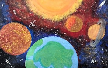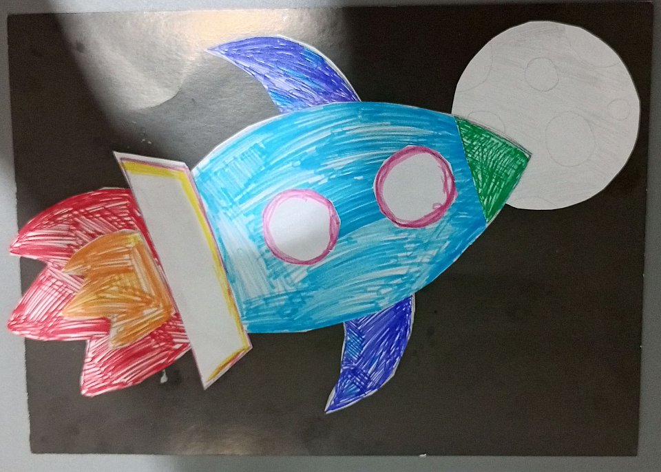 Ученица 1-ого класса, 7 лет. Работа выполнена в технике аппликации. Использовались цветная бумага, фломастеры.