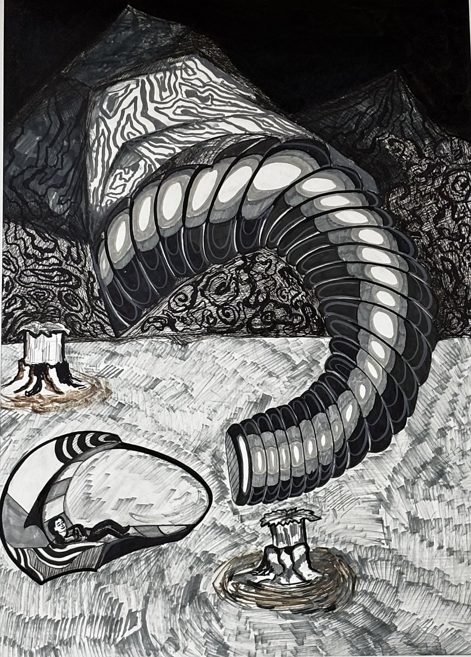 графика, маркер, ручка, в работе показывается возможная жизнь на марсе