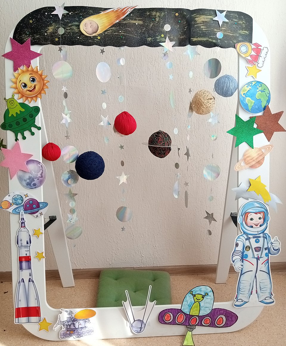 Использовался фоомиран, воздушные шарики и нитки, вырубной плакат.