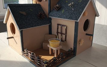 2 года, скворечник выполнен из дерева, расписан акриловыми красками, и покрыт лаком