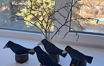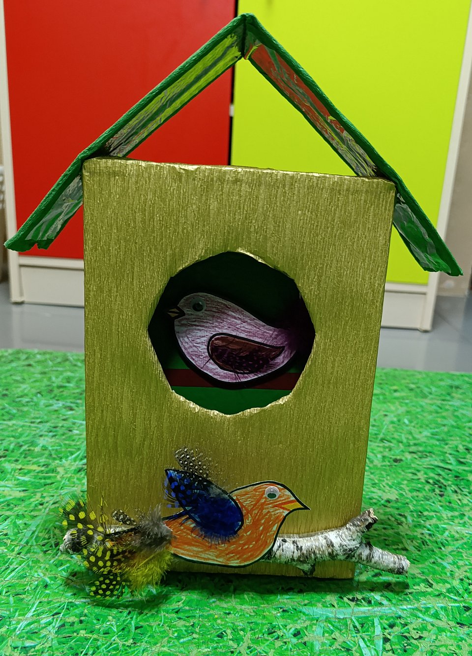 Дошкольник, поделка, картон, цветная бумага, пёрышки