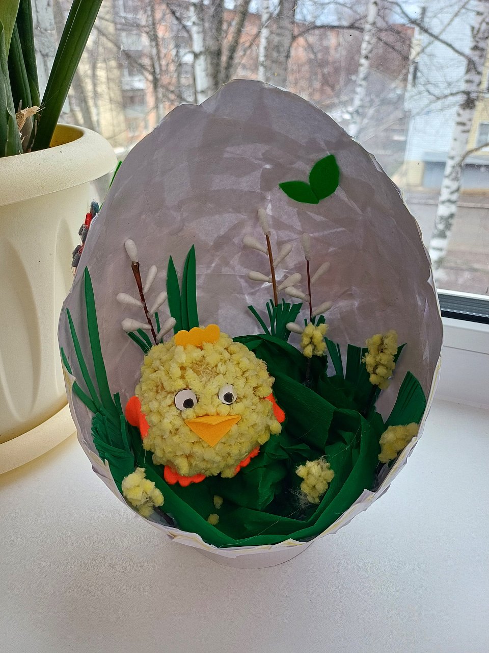 Работа выполнена различными материалами: ватные палочки, цветная бумага, салфетки