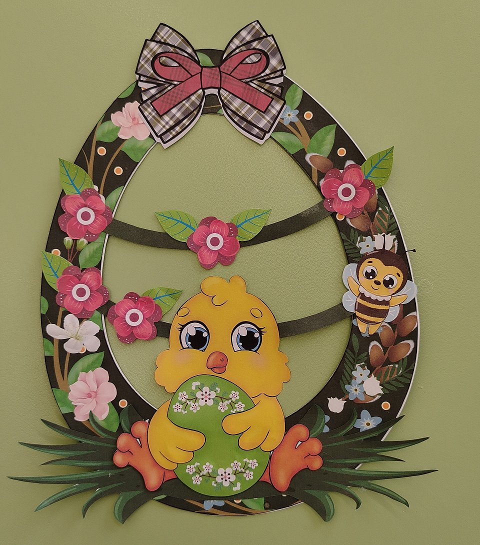 Аппликация из бумаги, все детали вырезано по распечатанным шаблонам. Основа венка из плотной бумаги для устойчивости. Использовался в работе клей карандаш и горячий клей.