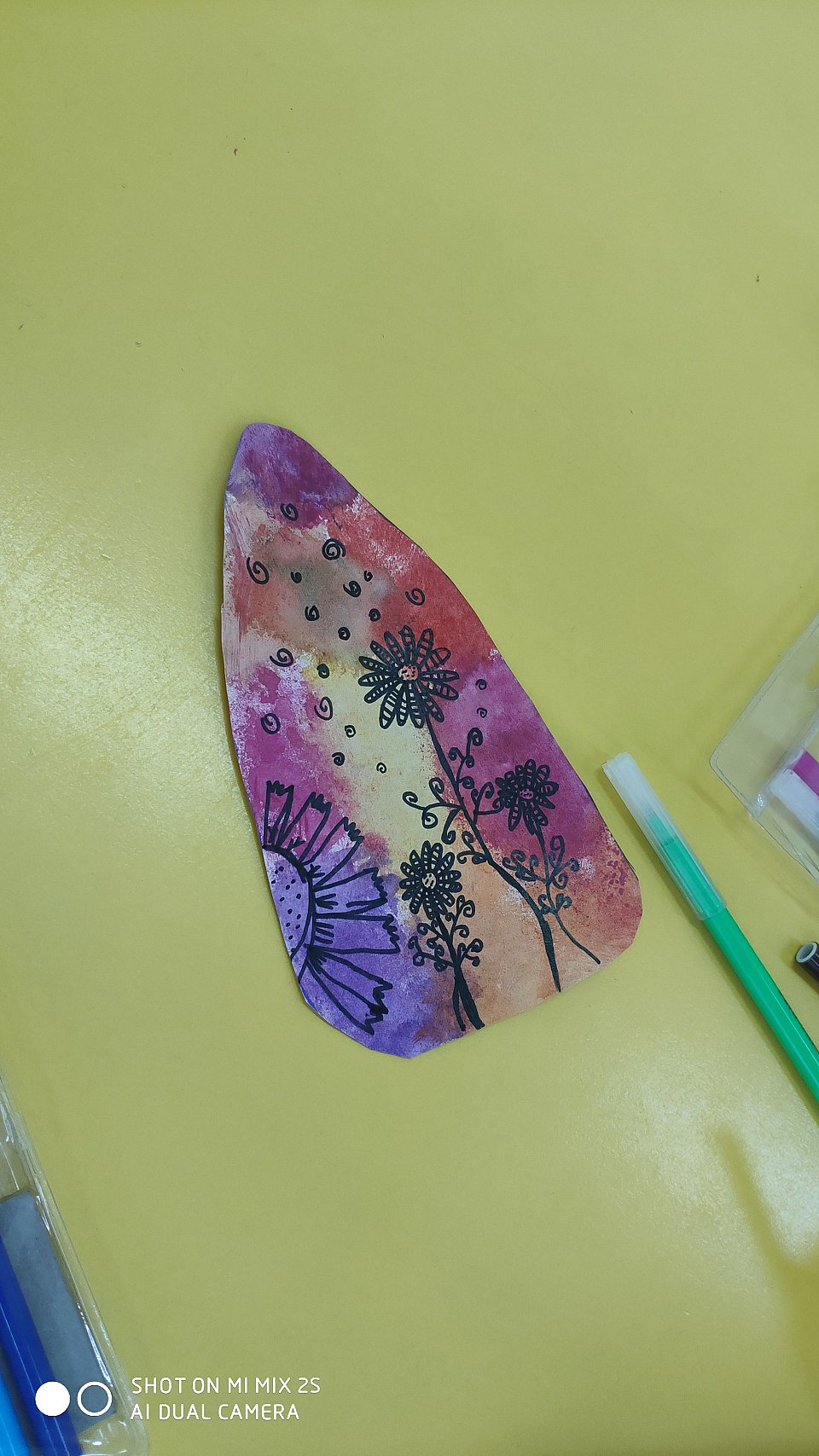 6 лет. Использование техники: Графика. Материал: губка, акварель, черный фломастер ,белая бумага