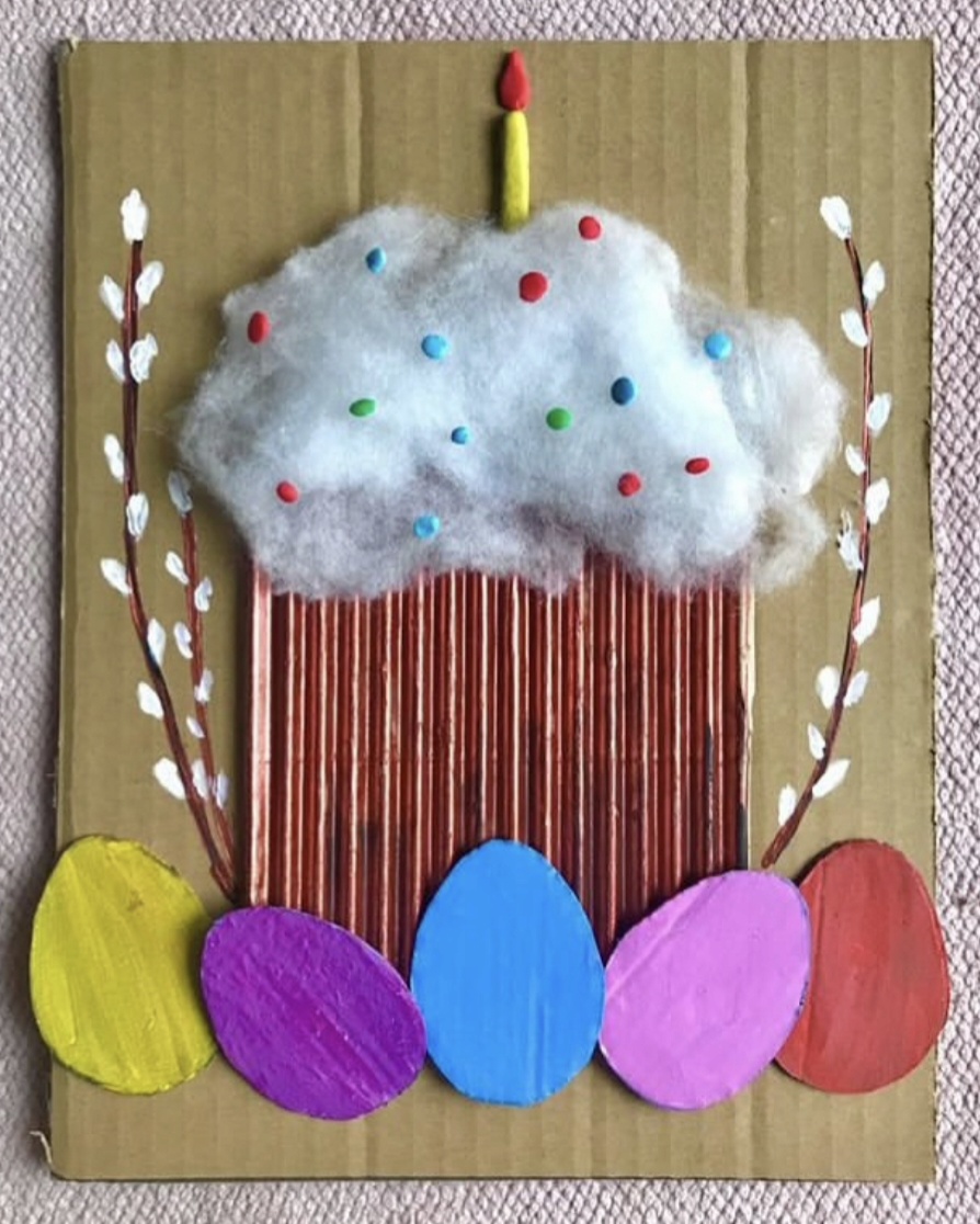 Использовали картон, пластилин, вату и краски .