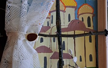 11 лет.Техника исполнения- аппликация.Материалы: цветной картон,гофрированная бумага,атласные ленточки