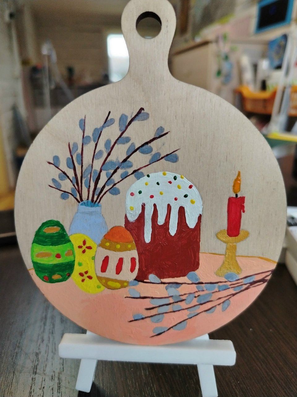 Деревянная основа, акриловые краски, роспись.
